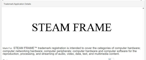STEAM FRAME™ trademark registration is intended to cover the categories of computer hardware; computer networking hardware; computer peripherals; computer hardware and computer software for the reproduction, processing, and streaming of audio, video, data, text, and multimedia content.