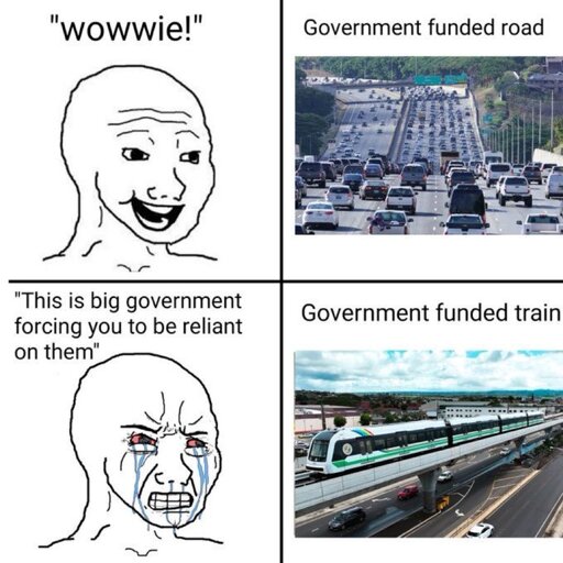 I was looking for this. This meme is not the own the author thinks it is. The people who follow this absolutely want to privatize that government road.