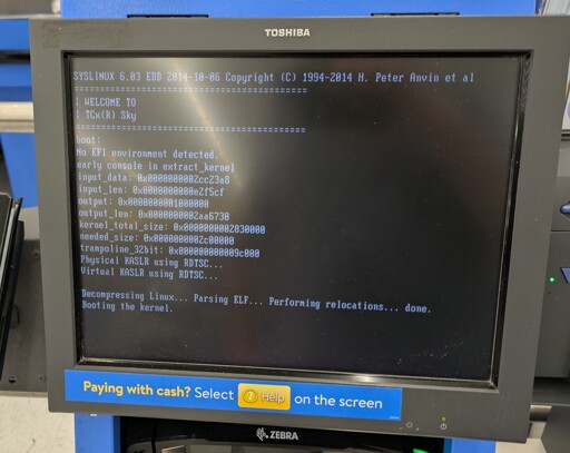 skiguy0123@lemmy.ca to Linux@lemmy.ml · 1 day agothe self checkout machines at Walmart need a reboot. syslinux 6.03lemmy.caimagemessage-square21linkfedilinkarrow-up1194arrow-down13